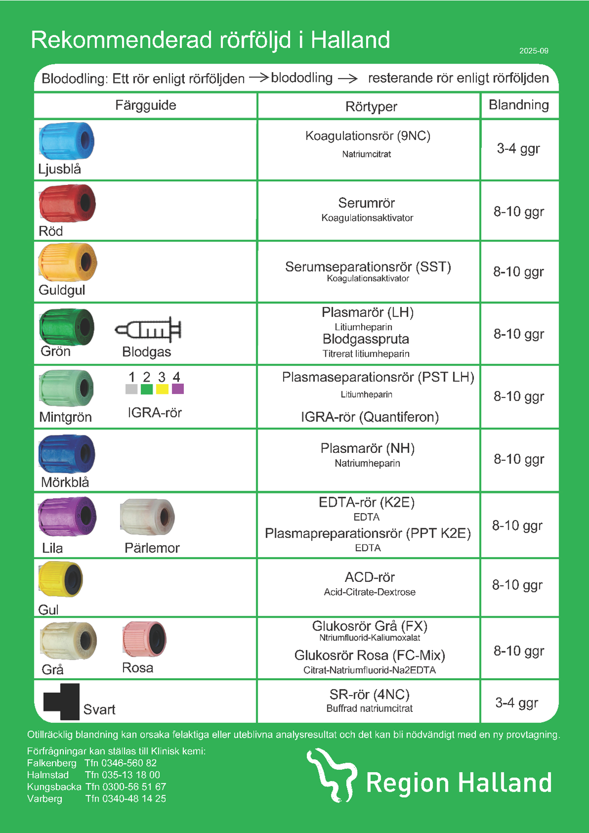 - Alla rör ska blandas direkt efter provtagning (när röret tas ur hylsan). Citratrör vänds 3-4 gånger,